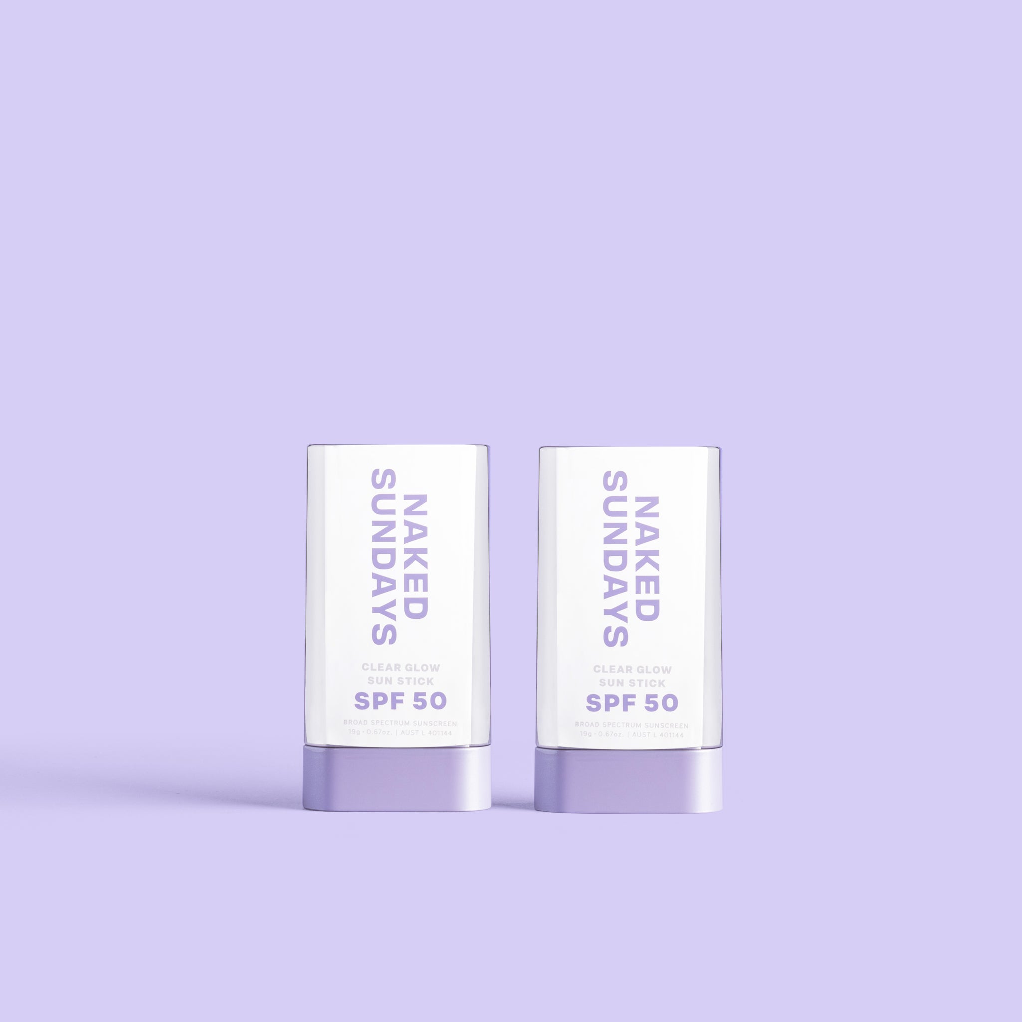 Get DOUBLE the "on the go" glow with the Naked Sundays SPF50 Clear Glow Stick Duo! Featuring the newest member of the SPF family - get two of our Multi-Purpose Dry Body Oil and Face Top Up Stick for less!