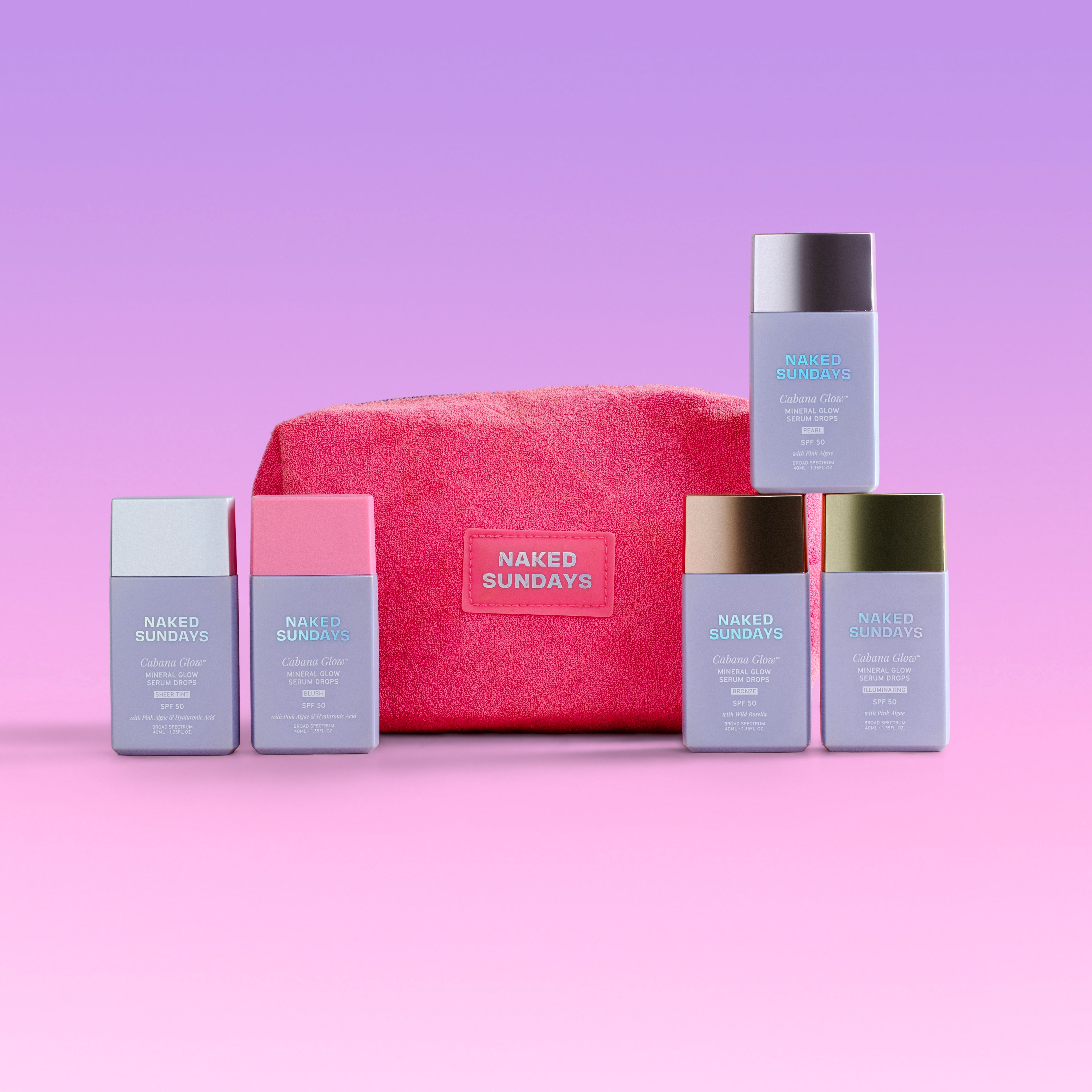 Introducing the CabanaGlow™ Complete Set! Featuring our best-selling CabanaGlow SPF50 Mineral Serum Drops in Illuminating, Sheer Tint, Pearl, Bronze and Blush! Mix and match to suit your mood and skin tone.