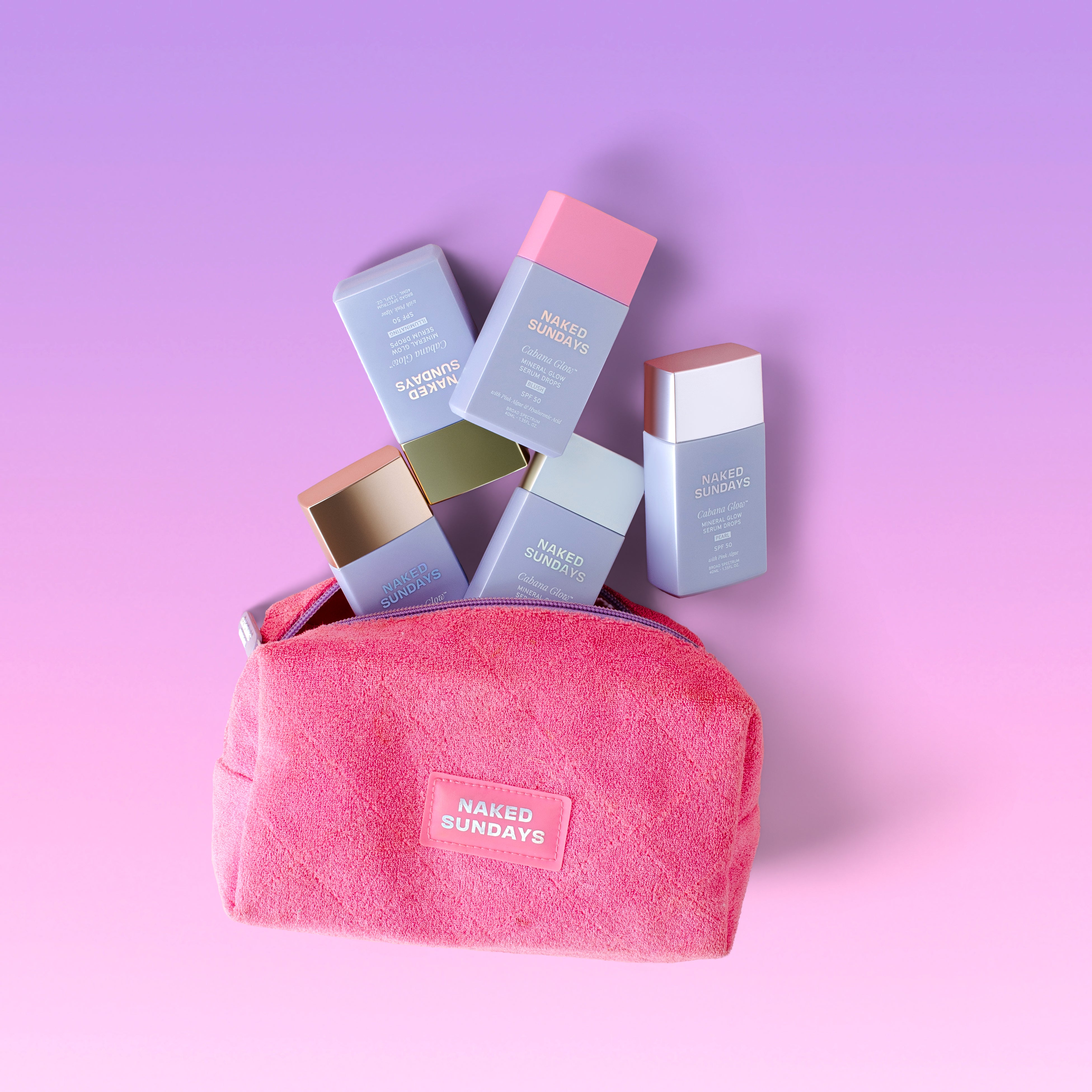 Introducing the Naked Sundays Pink Terry Toweling Cosmetic Bag, to house all your SPF essentials!