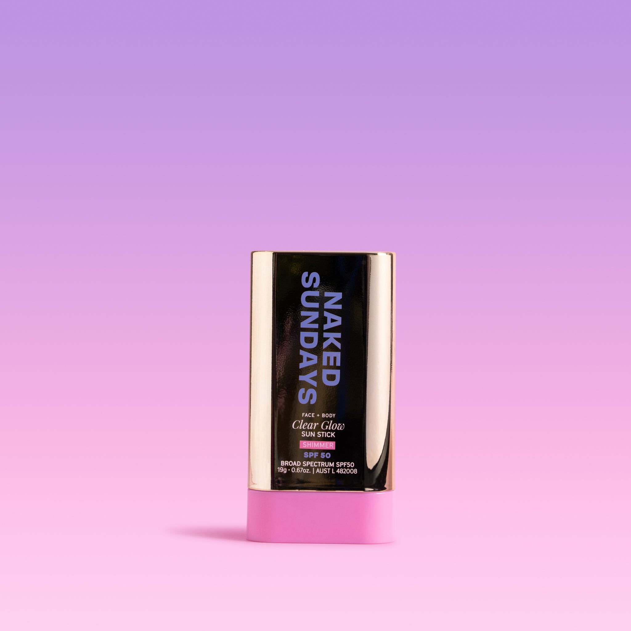 Meet Naked Sundays cult-favourite clear SPF stick, now with a luminous shimmery twist. The Naked Sundays SPF50 Clear Glow Sun Stick with Shimmer is the sun stick you know and love, now with an added glitter finish for your body, that catches the sun in all the right places.