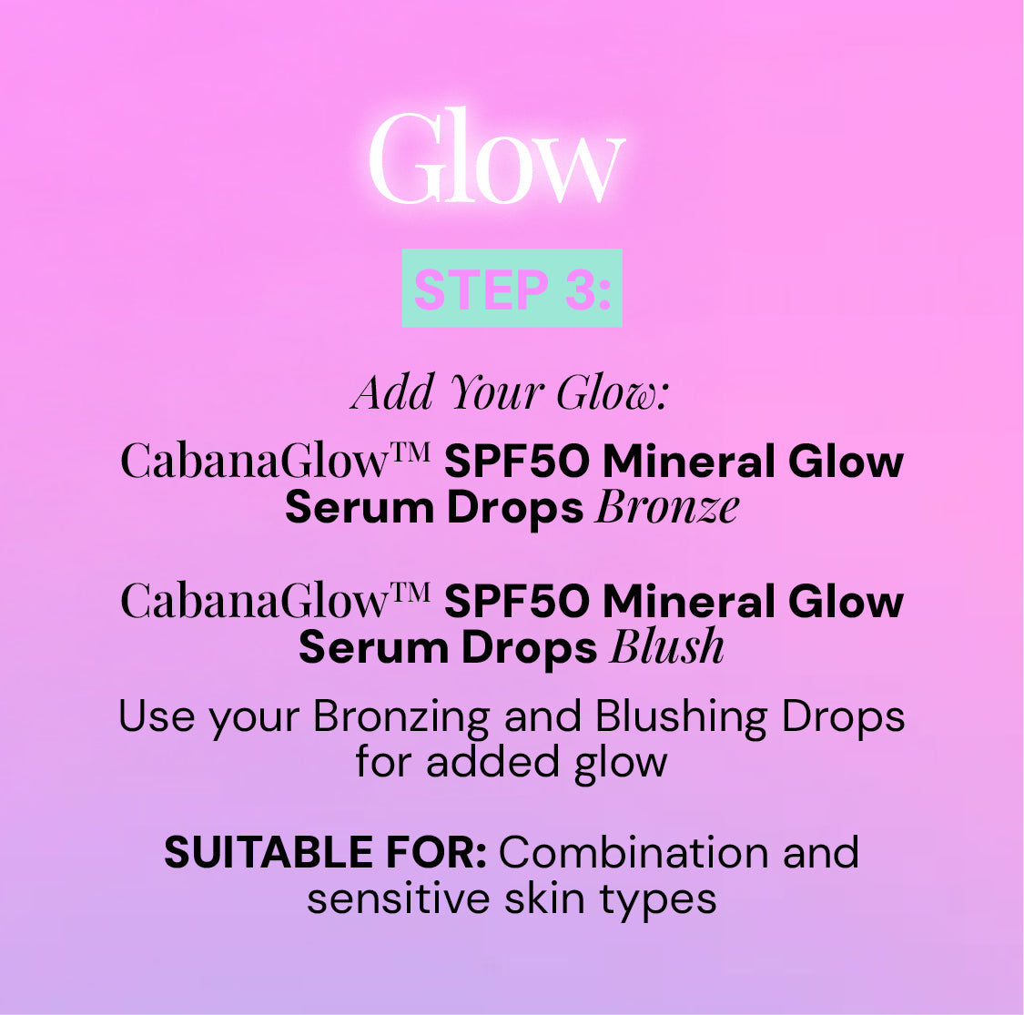 STEP 3: Add our CabanaGlow SPF50 Mineral Glow Serum Drops in Bronze.