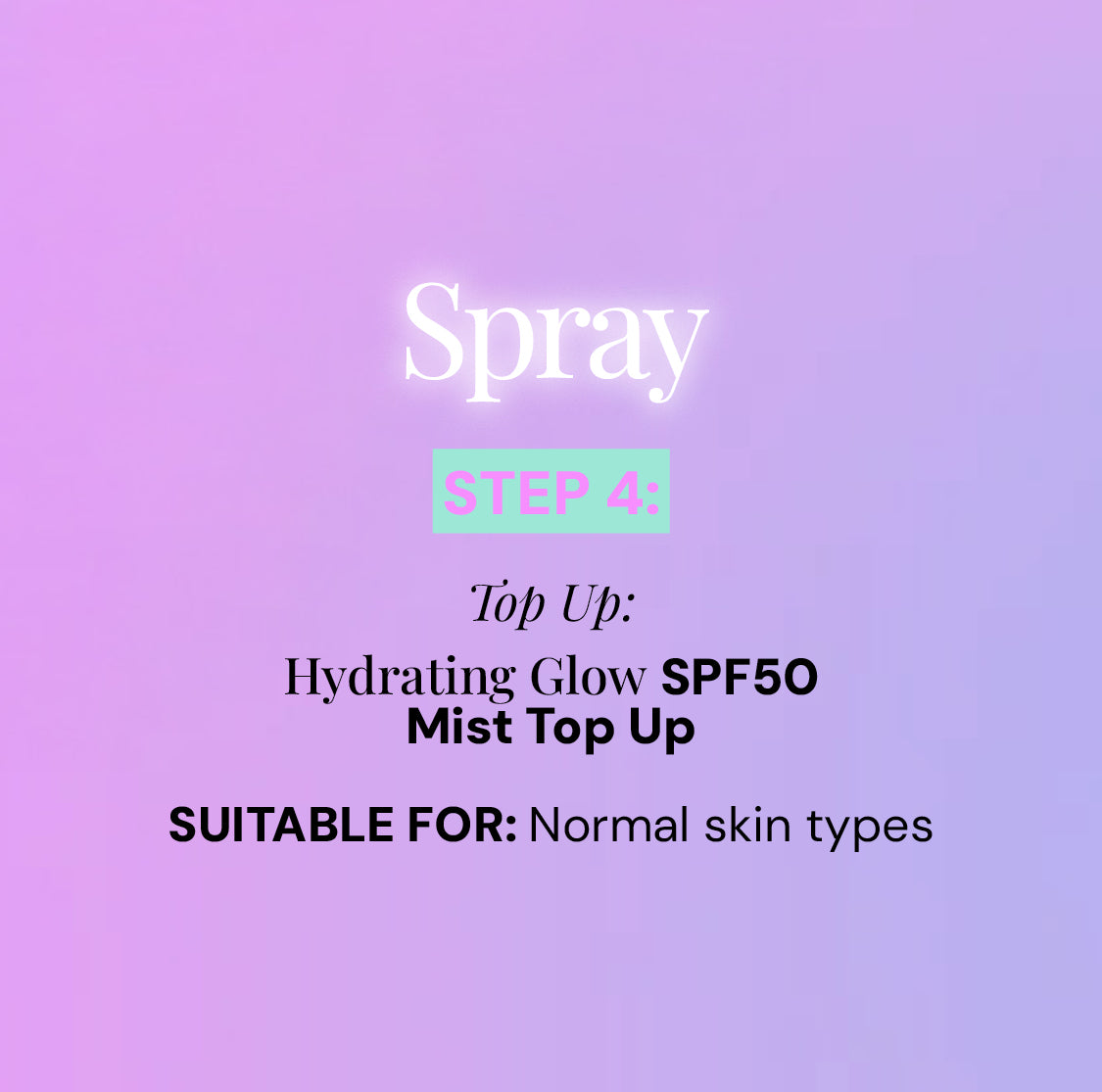 STEP 4: Top up with our SPF50 Glow Face Mist Top Up Spray.